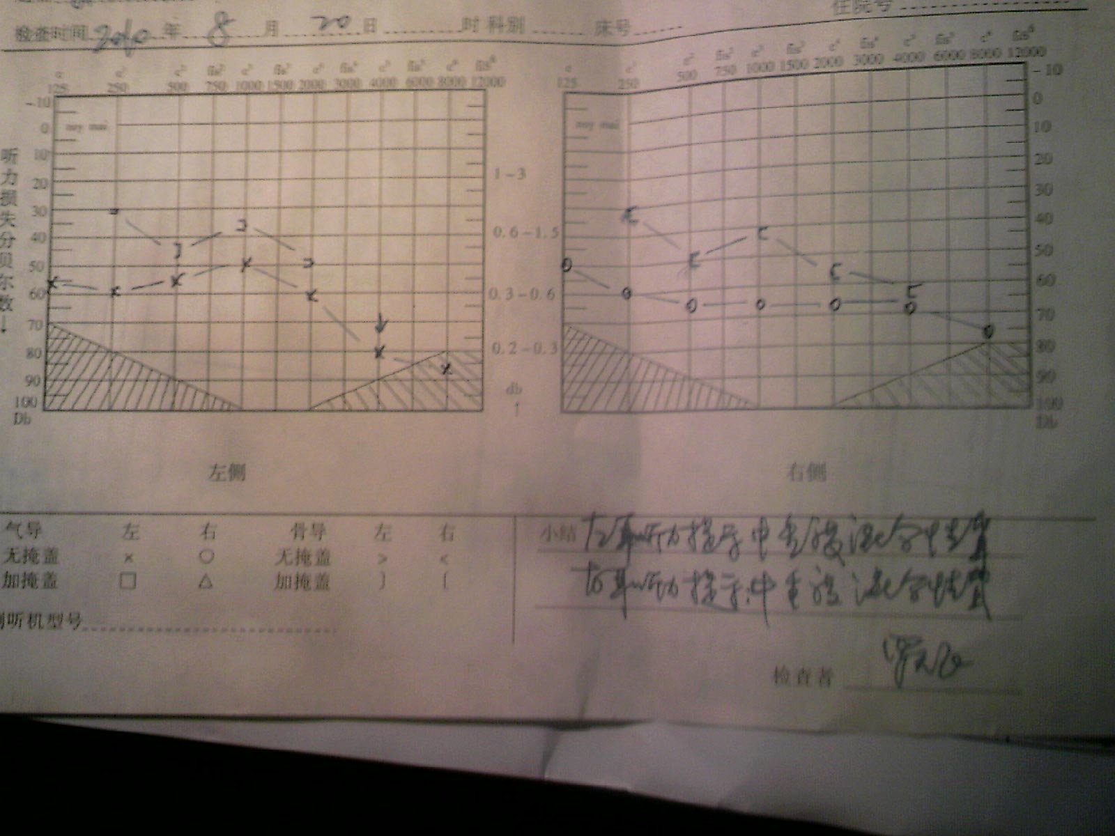 请大家帮我分析一下听力检查表,谢谢。 |